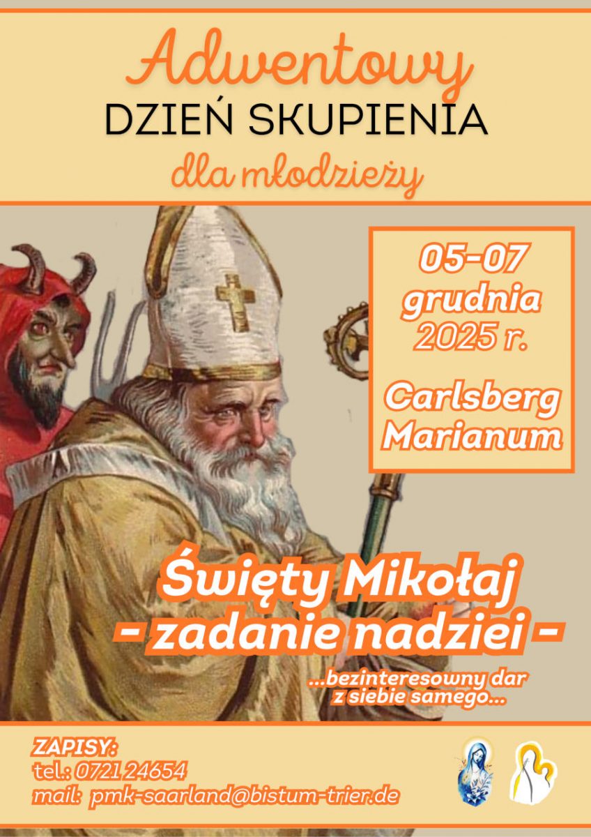 Zapraszamy na Adwentowy Dzień Skupienia dla Młodzieży w dniach 05.07.2025r w Marianum. Temat przewodni „Święty Mikołaj – zadanie nadziei – bezinteresowny dar z siebie samego”.