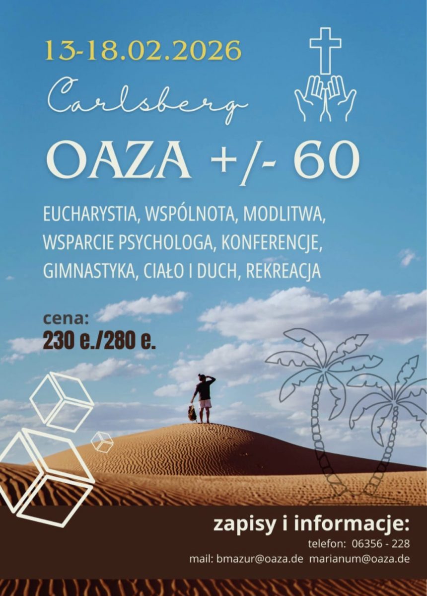 Nasi Drodzy,zapraszam Was bardzo serdecznie na Oazę +/- 60.Zaproście Waszych znajomych, przyjaciół, krewnych.To będzie piękny czas zakończenia karnawału😅 i wejście w Wielki Post🙏 W programie