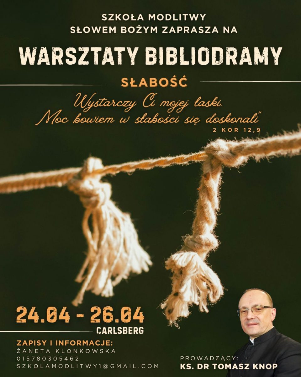Zapraszamy w dniach 01-03 maja 2026 na warsztaty dla kobiet „Judyta – wzorem dla kobiety XXI wieku”. Więcej informacji na plakacie. Zapraszamy !